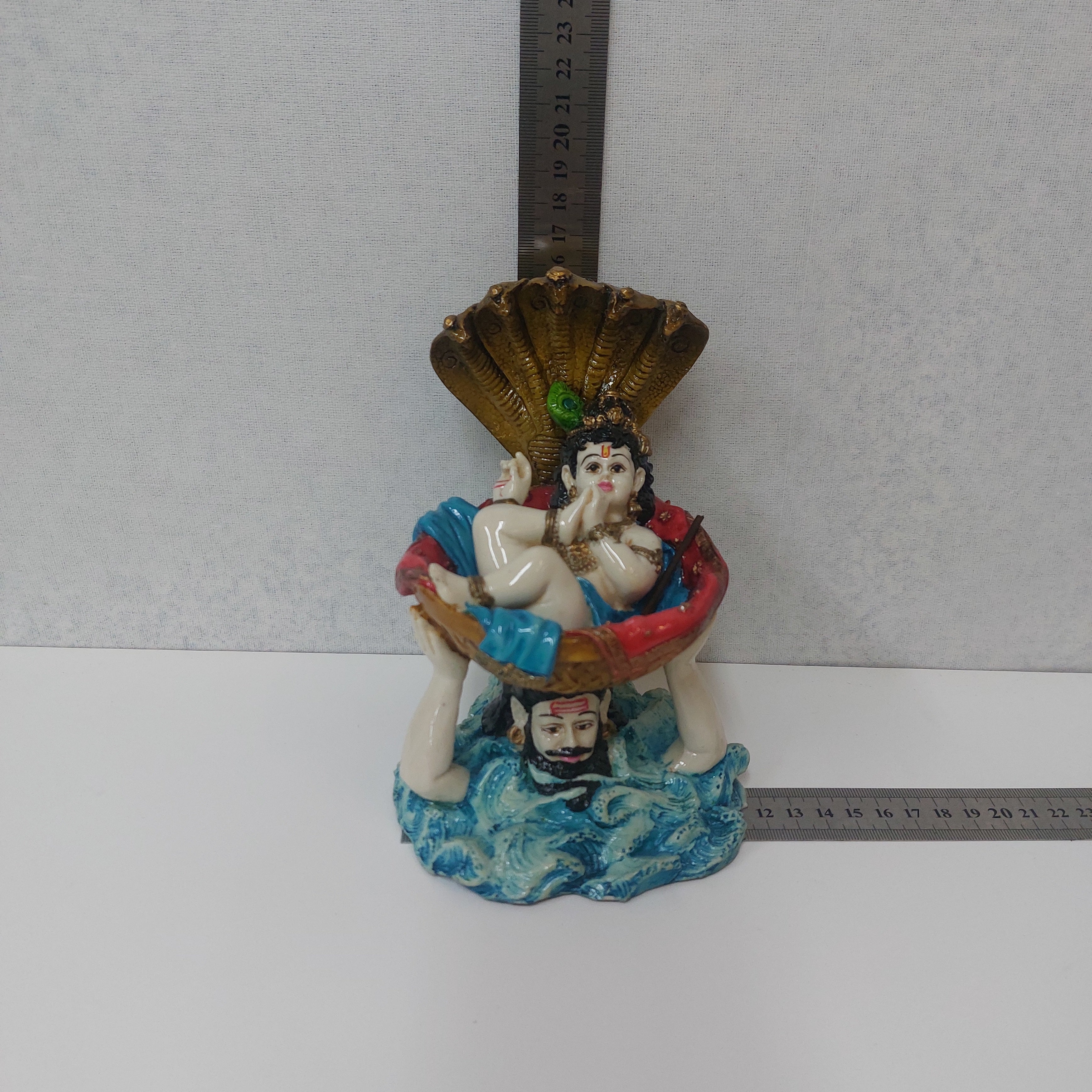 Handmade Poly resin  Statue For Gifting, Decorative Showpiece. Vasudev carrying Baby Krishna Statue. Decorative Showpiece for Gift.