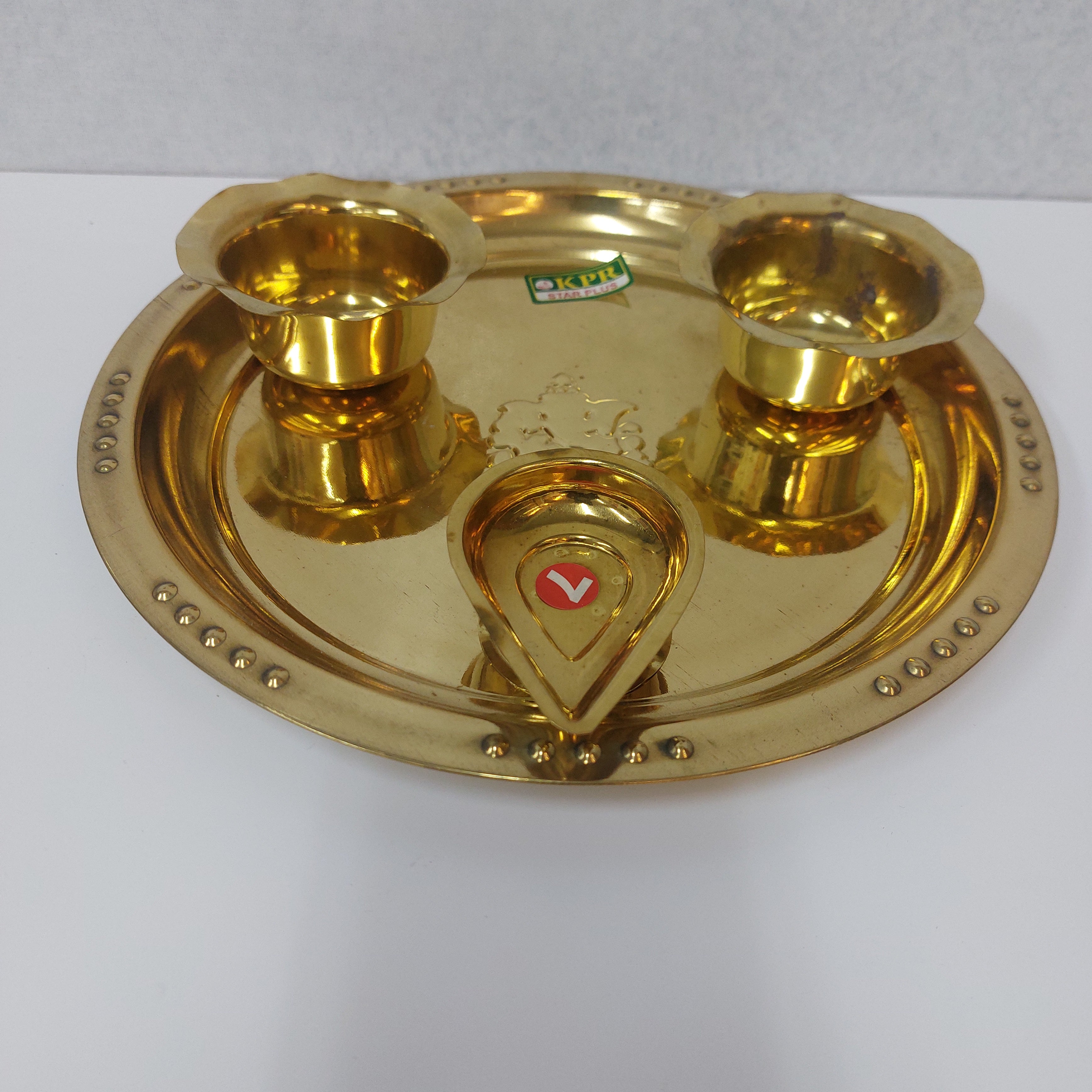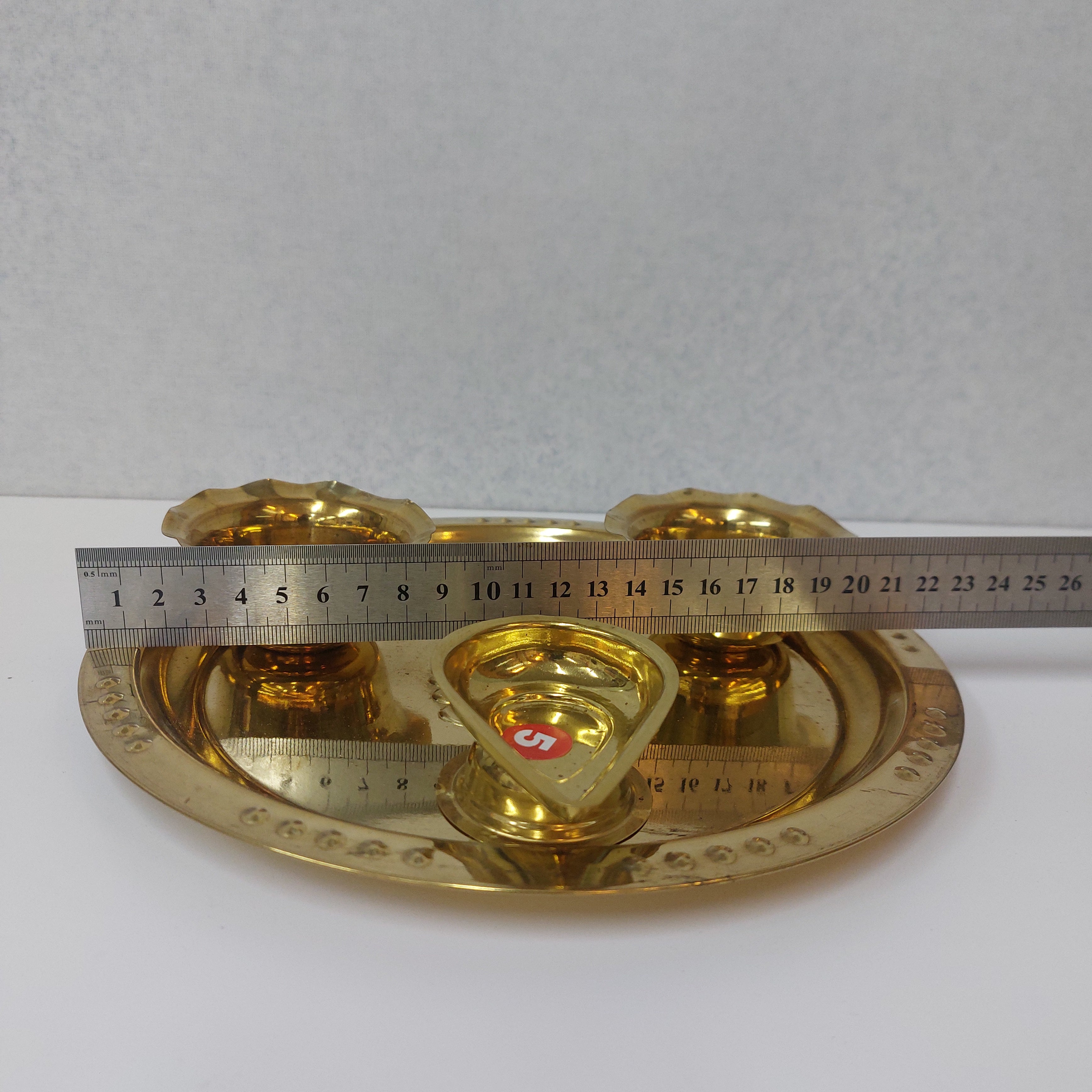 Handcrafted Brass Pooja Thali / Aarti Brass Plate with Diya No5